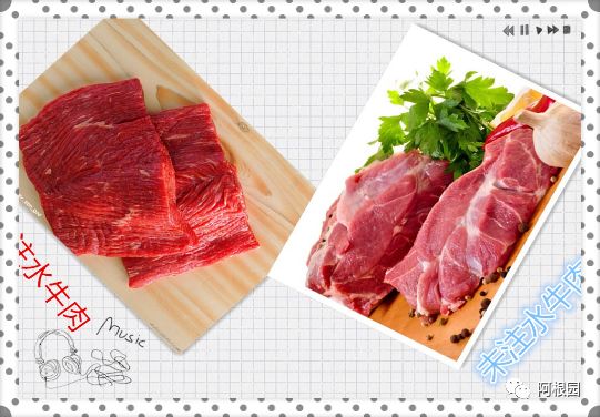 注水牛肉:可以让商贩用刀稍微划开,注水的肉会顺势流出水来,如果是冷冻的则会听到冰疙瘩的声音。